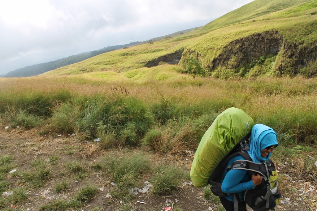 kami melewati padang rumput (sabana) yang landai, beberapa bukit kecil, mendaki sedikit